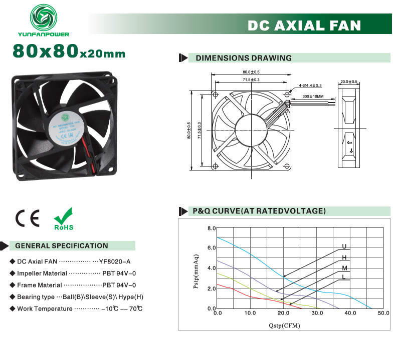 | YFD8020B24U | 12 | 0.25 | 6 | 4500 | 1.32 | 7 | 43.5 |